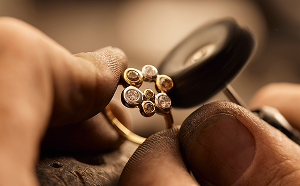 Here, the traditional skills of the master jeweller are utilised to build the final form of the design.