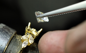 Fitting or “setting” the gemstones into the design is a highly skilled task performed by only the most experienced craftsmen.
